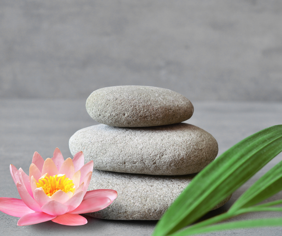 Wohltuende Massage mit warmen Basaltsteinen zur Lockerung der Muskulatur.